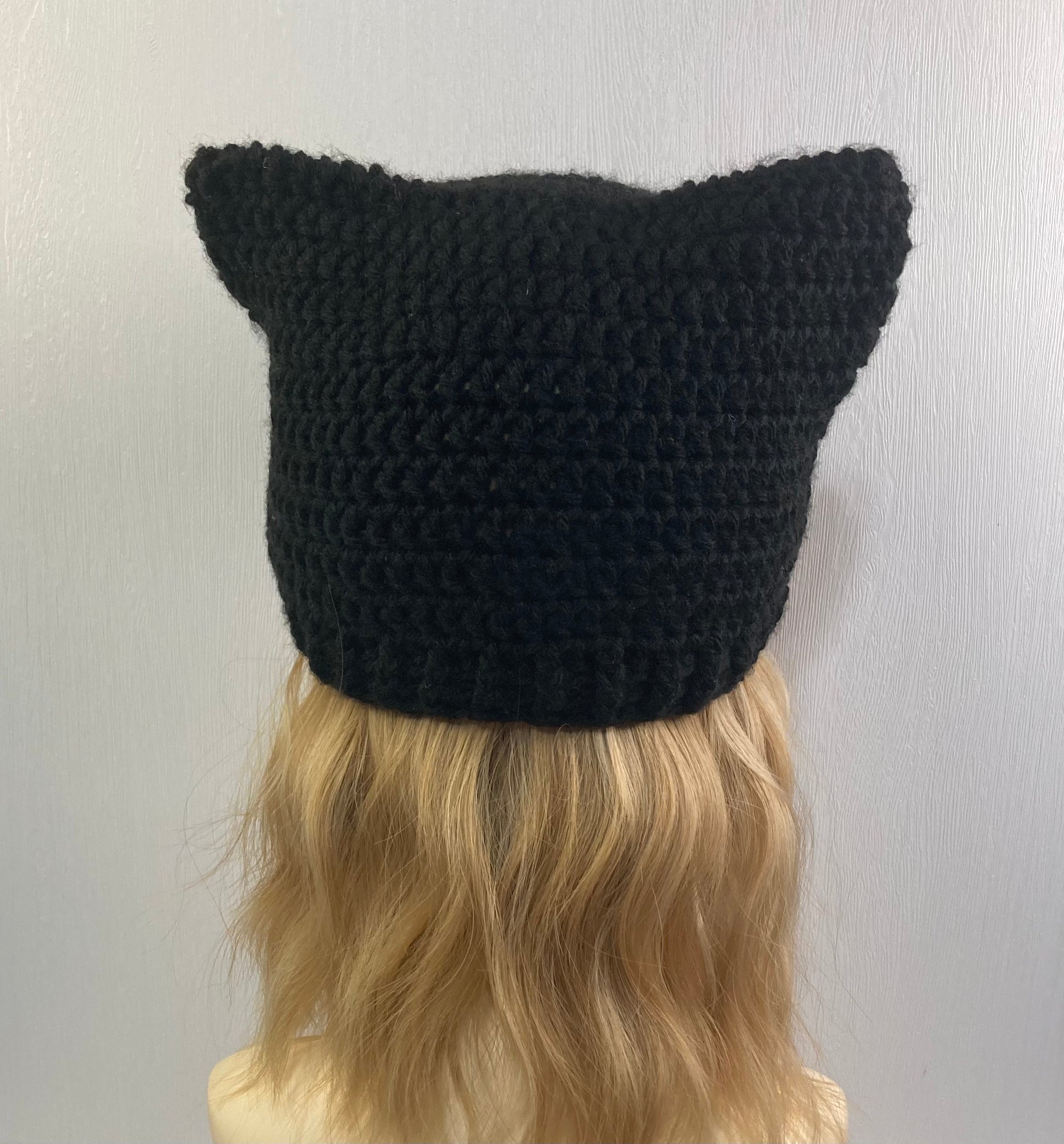 This handmade crochet Cat Ear Beanie is a stylish accessory perfect for adding a fun touch to your outfit. This is a rectangle shaped beanie that, when worn, takes a cat ear-like shape. Perfect for keeping you warm while adding a touch of whimsy to any outfit.