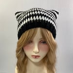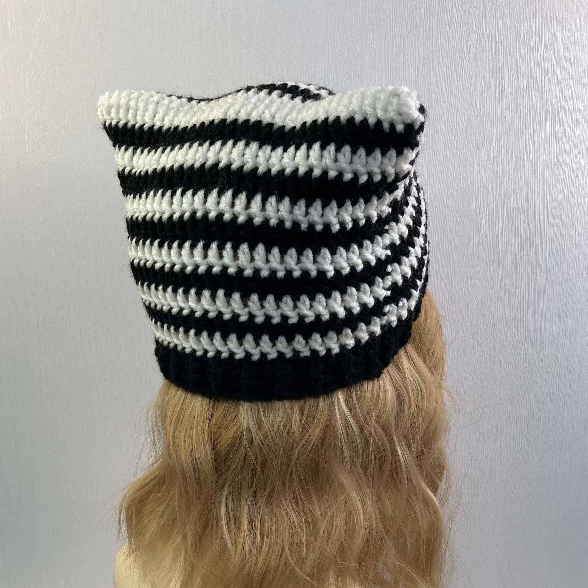 Crochet Cat Ear Beanie - Black and White