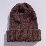 Double Layer Knit Beanie - 100% Wool - Chestnut Tweed