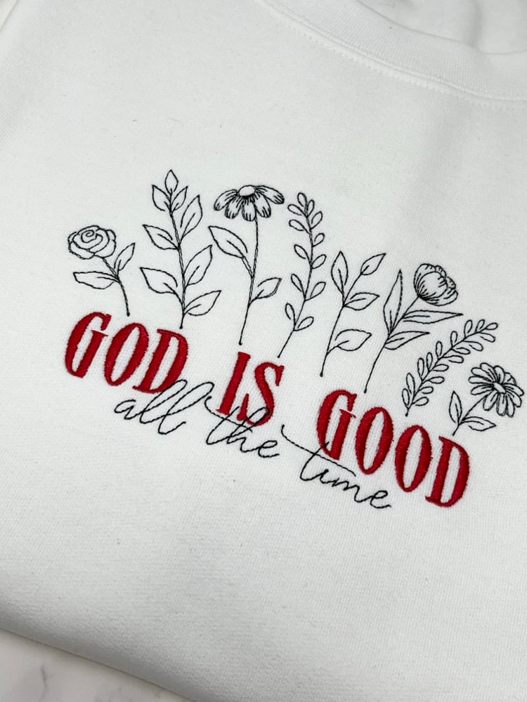 God is Good All The Time Embroidered Crew Neck Sweatshirt