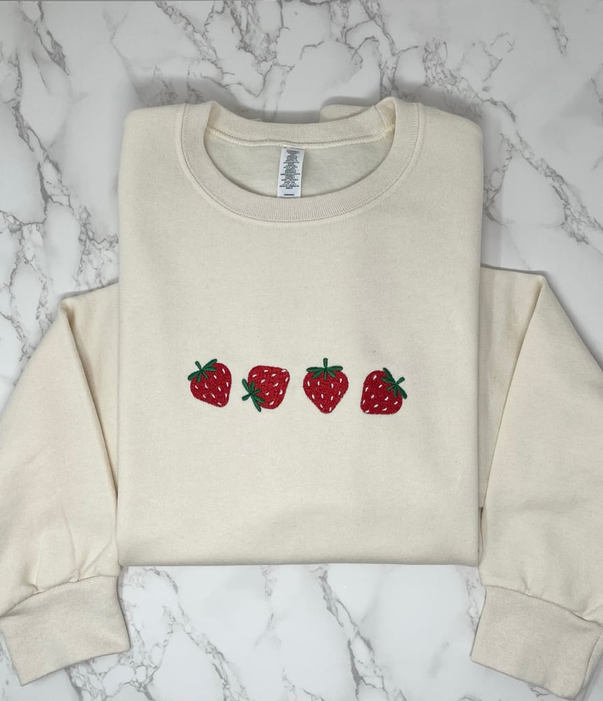 This Strawberry Crew Neck Sweatshirt is a versatile addition to your wardrobe, perfect for casual occasions.