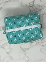 Carefully crafted from 100% cotton fabric backed by a layer of fleece and fully lined for durability and a clean finish. The zipper closure keeps your items secure, while the boxy shape maximizes storage space without taking up too much room in your bag or suitcase.