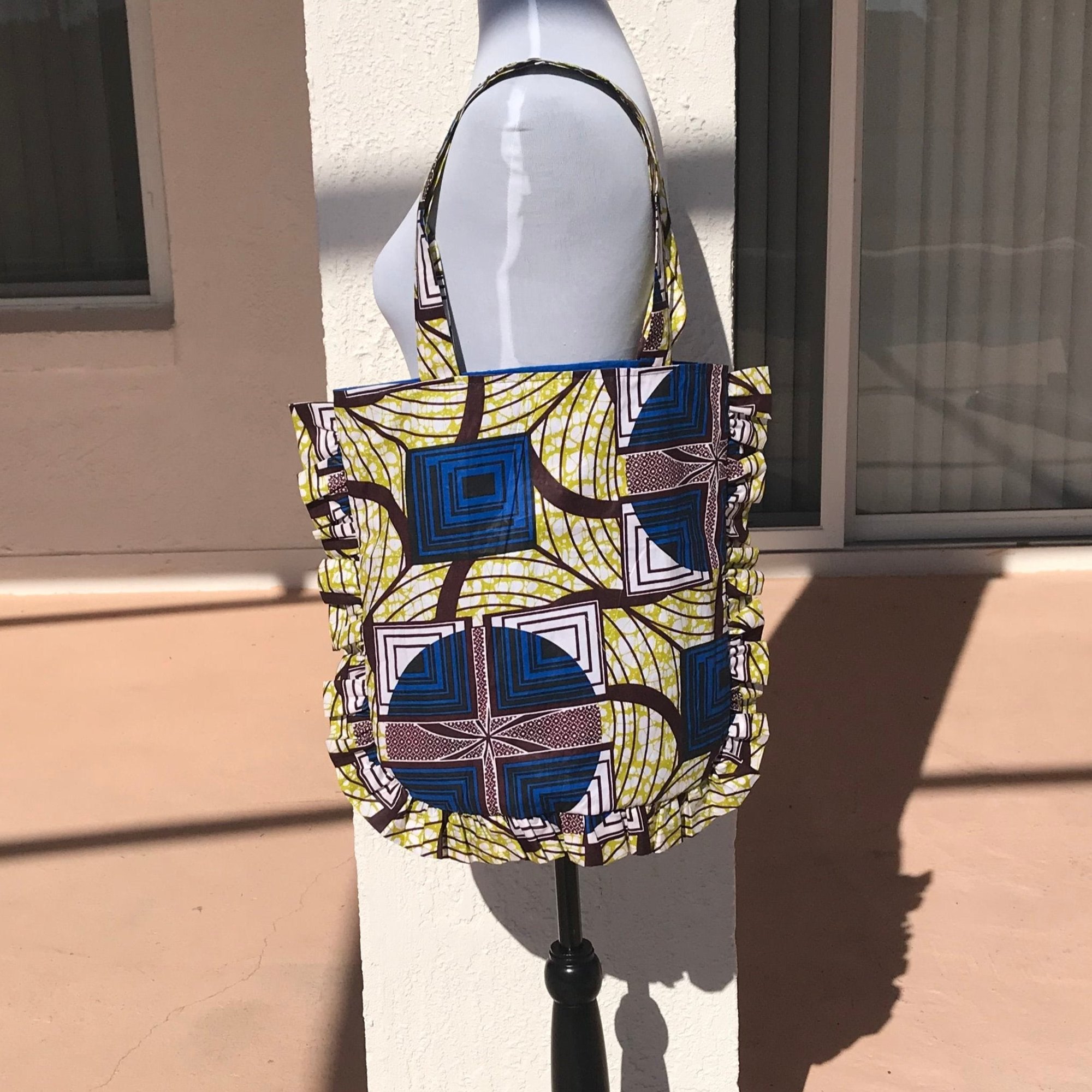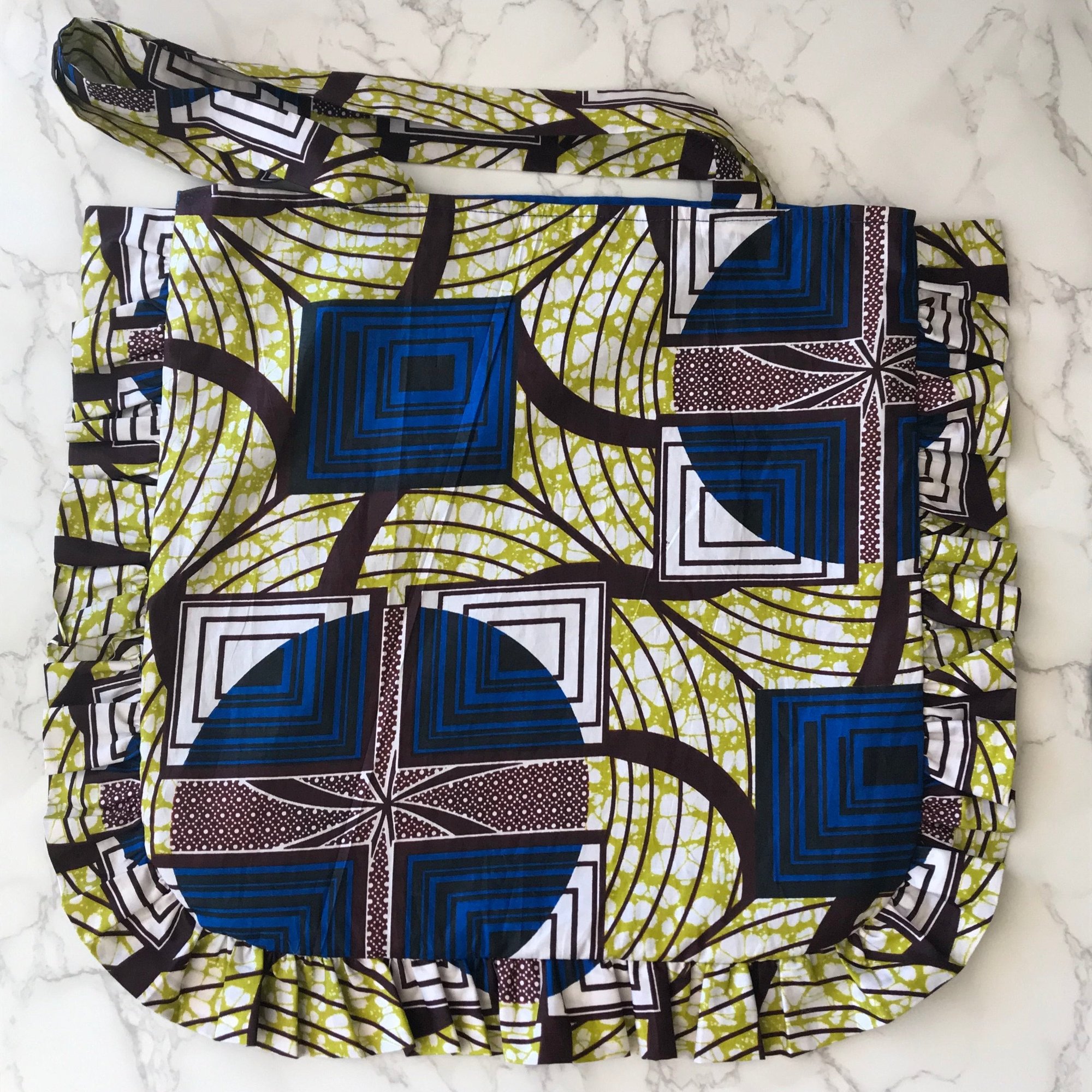 Handmade Blue Ankara Ruffle Tote Bag - African Print