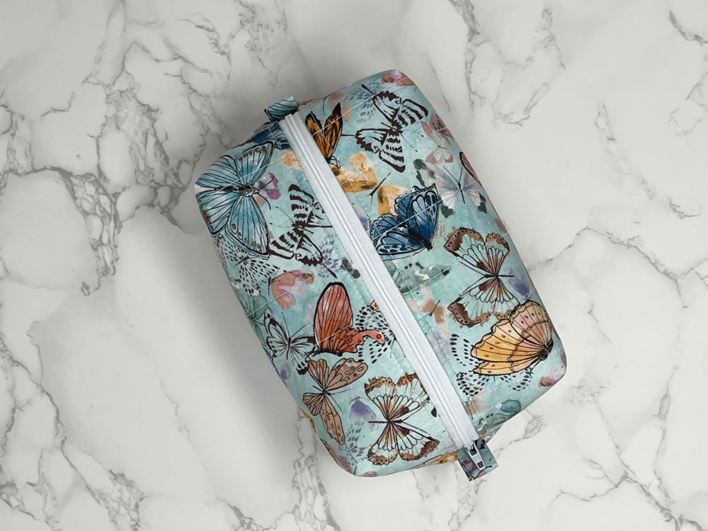 Blue Butterfly Handmade Boxy Zipper Pouch