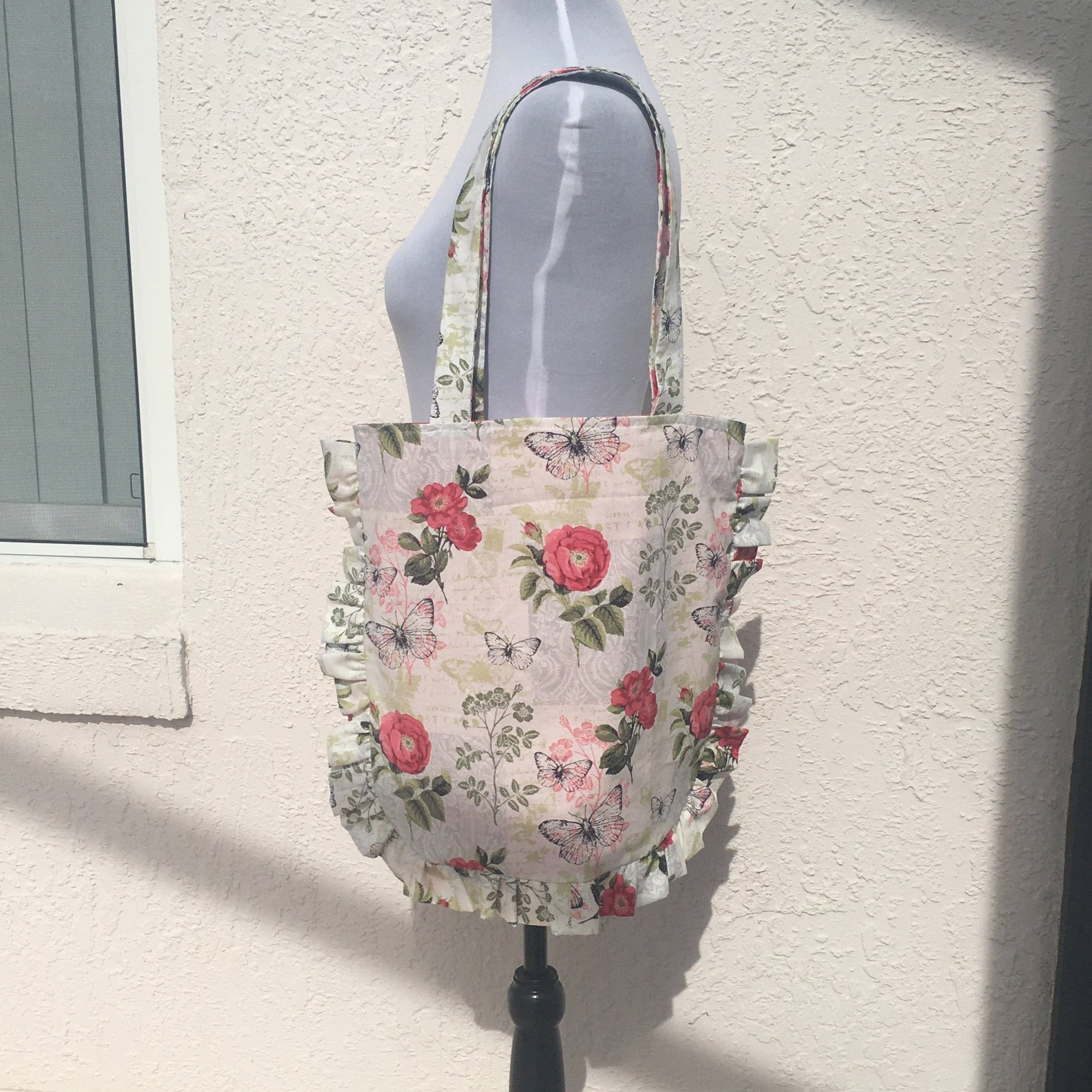 Handmade Butterflies and Roses Ruffle Tote Bag