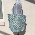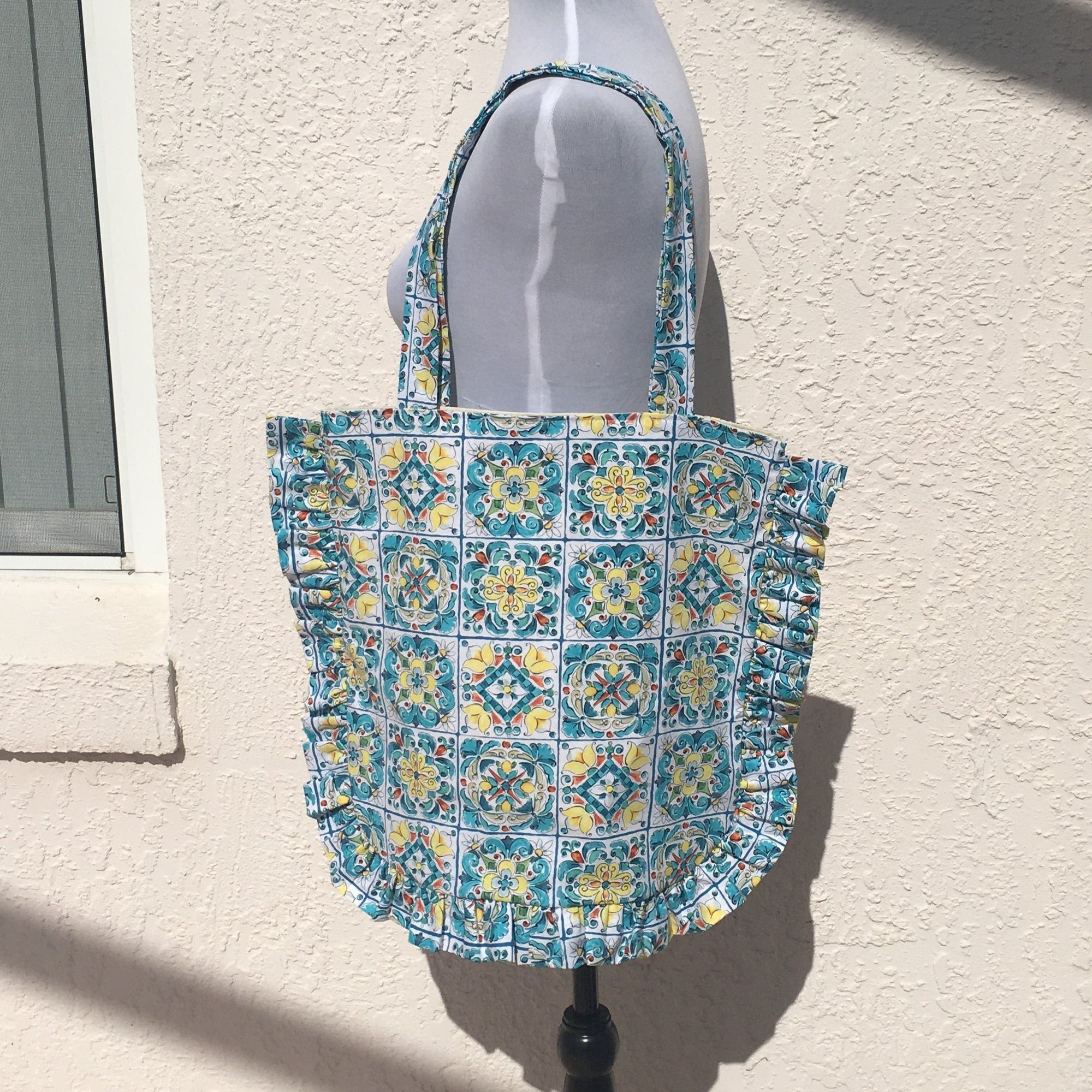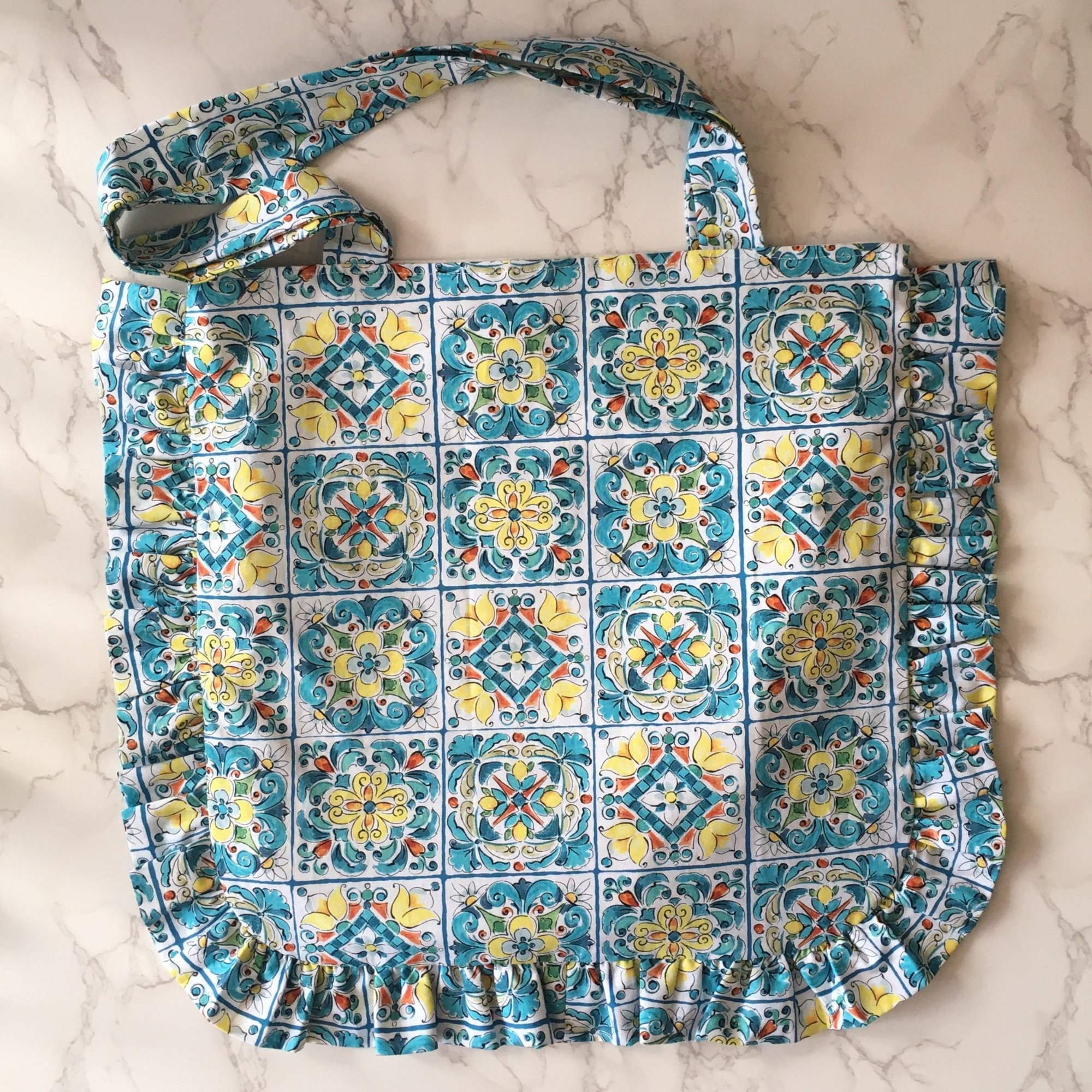 This Handmade Floral Ruffle Tote Bag is a charming and practical accessory for everyday use. Crafted from lightweight cotton, this tote bag features a beautiful floral pattern and delicate ruffle detailing, adding a touch of sweetness to your outfit.