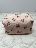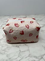 Carefully crafted from 100% cotton fabric backed by a layer of fleece and fully lined for durability and a clean finish. The zipper closure keeps your items secure, while the boxy shape maximizes storage space without taking up too much room in your bag or suitcase.