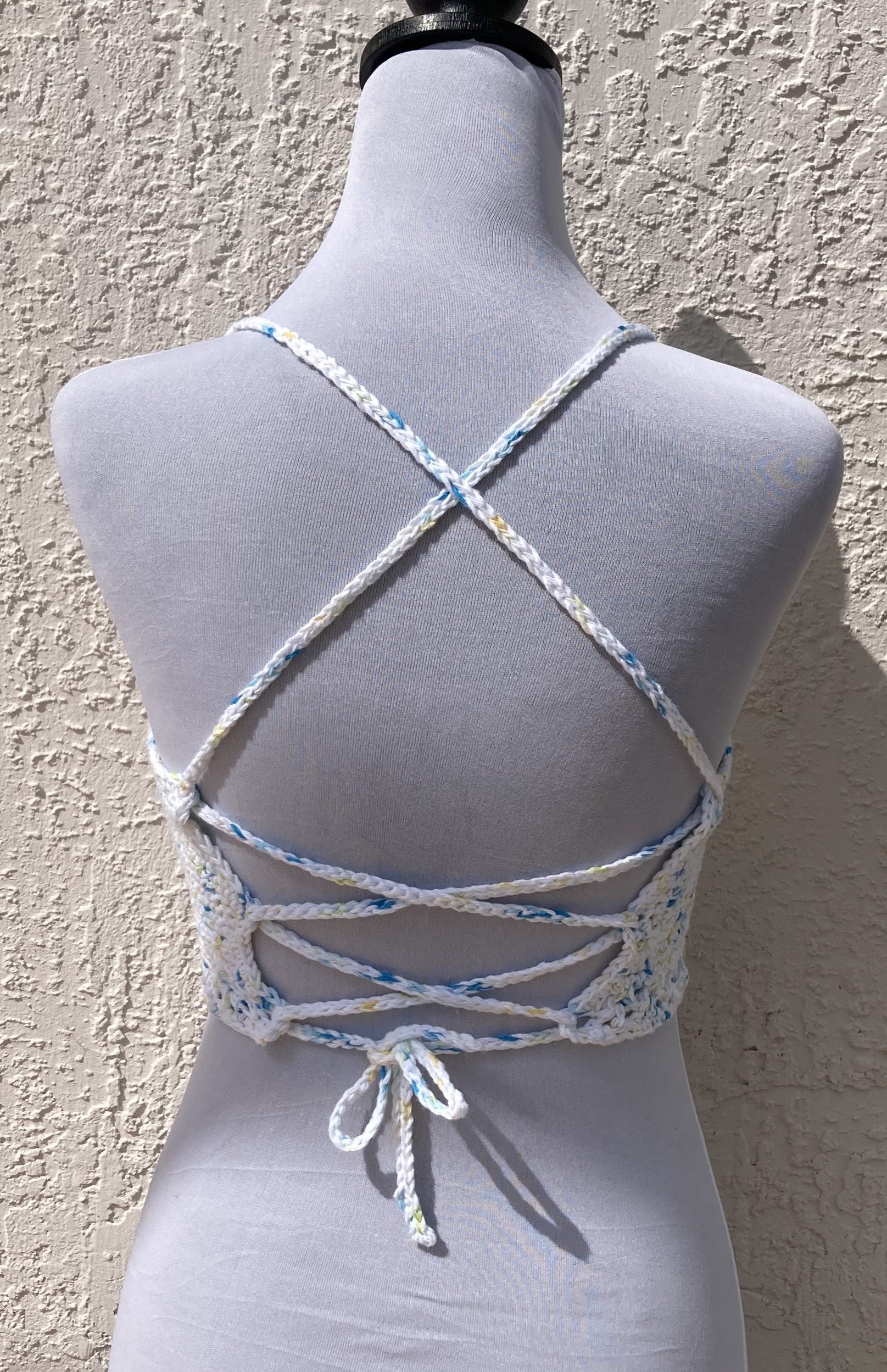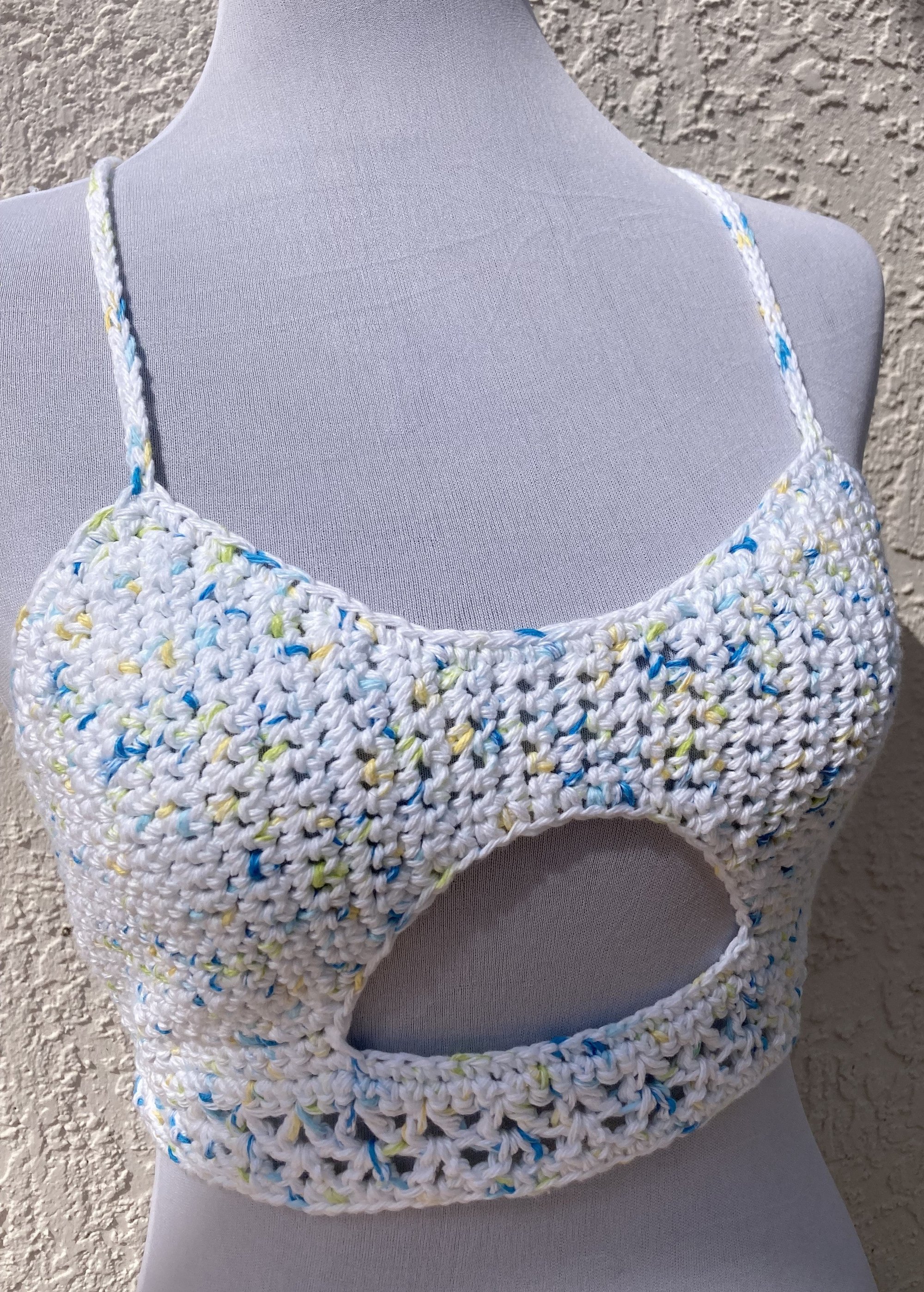 100% Cotton handmade crochet crop top with cut out detail.