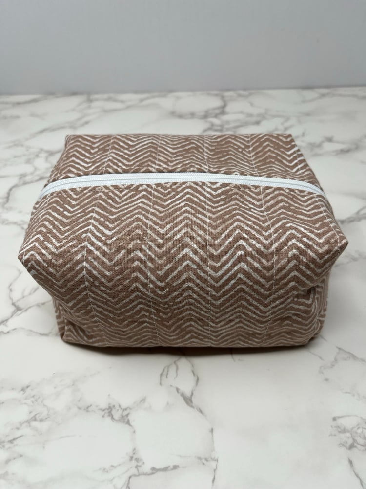 This handmade boxy zipper pouch is perfect for keeping your essentials organized, whether you're at home or on the go. Its roomy design makes it ideal for makeup, toiletries, travel accessories, art supplies, or everyday carry items.