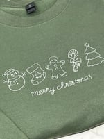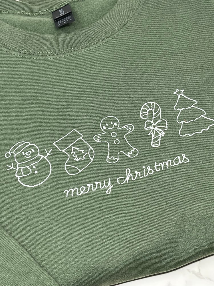 Merry Christmas Line Art Embroidered Crew Neck Sweatshirt