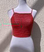100% Cotton handmade crochet crop top with mesh detail.