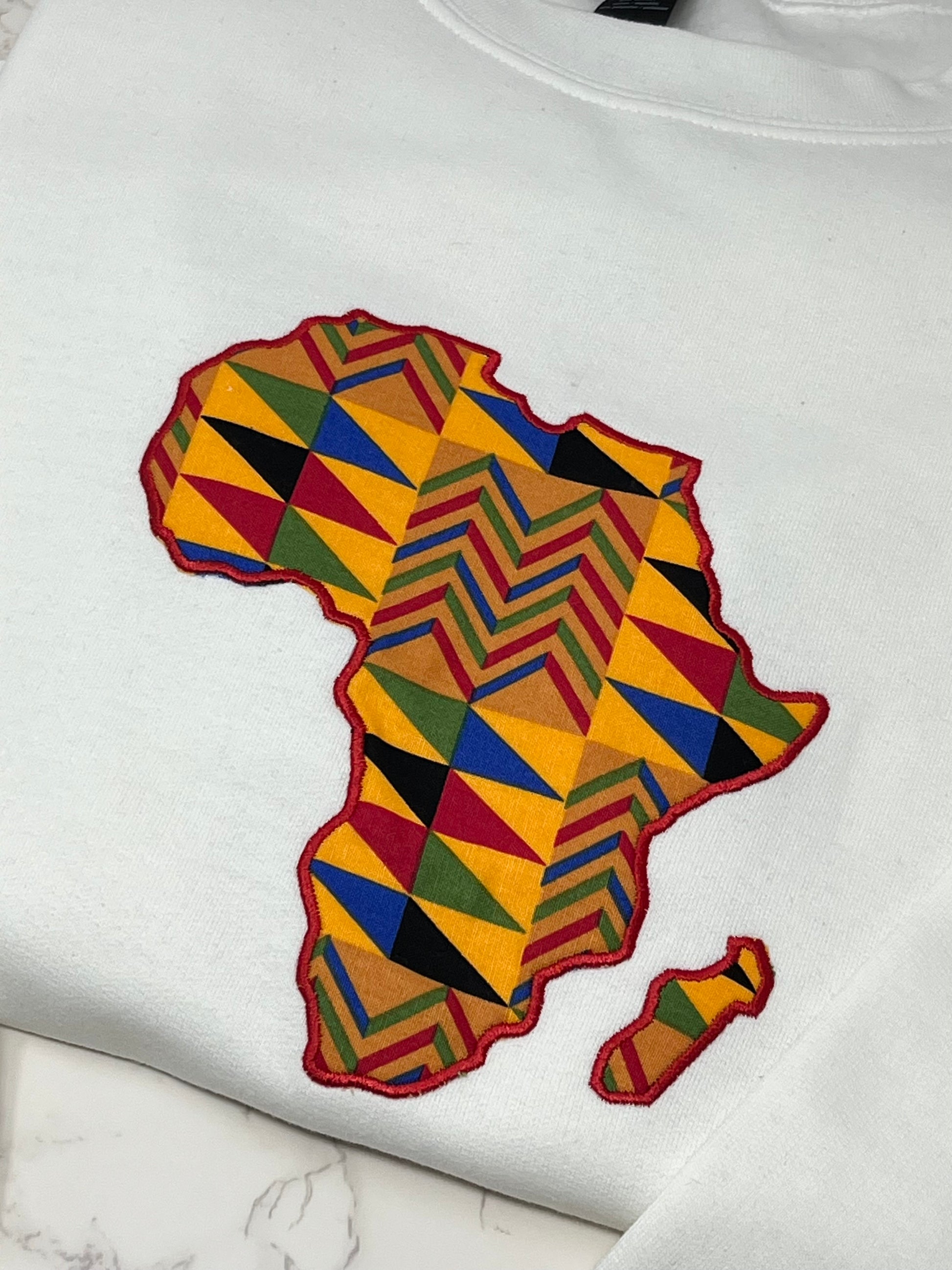 Africa Map Applique Embroidered Crew Neck Sweatshirt