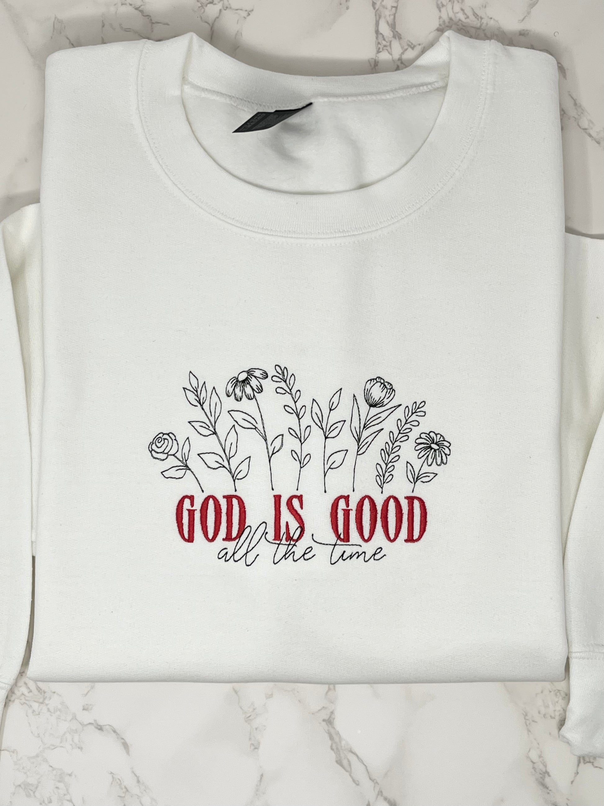 God is Good All The Time Embroidered Crew Neck Sweatshirt