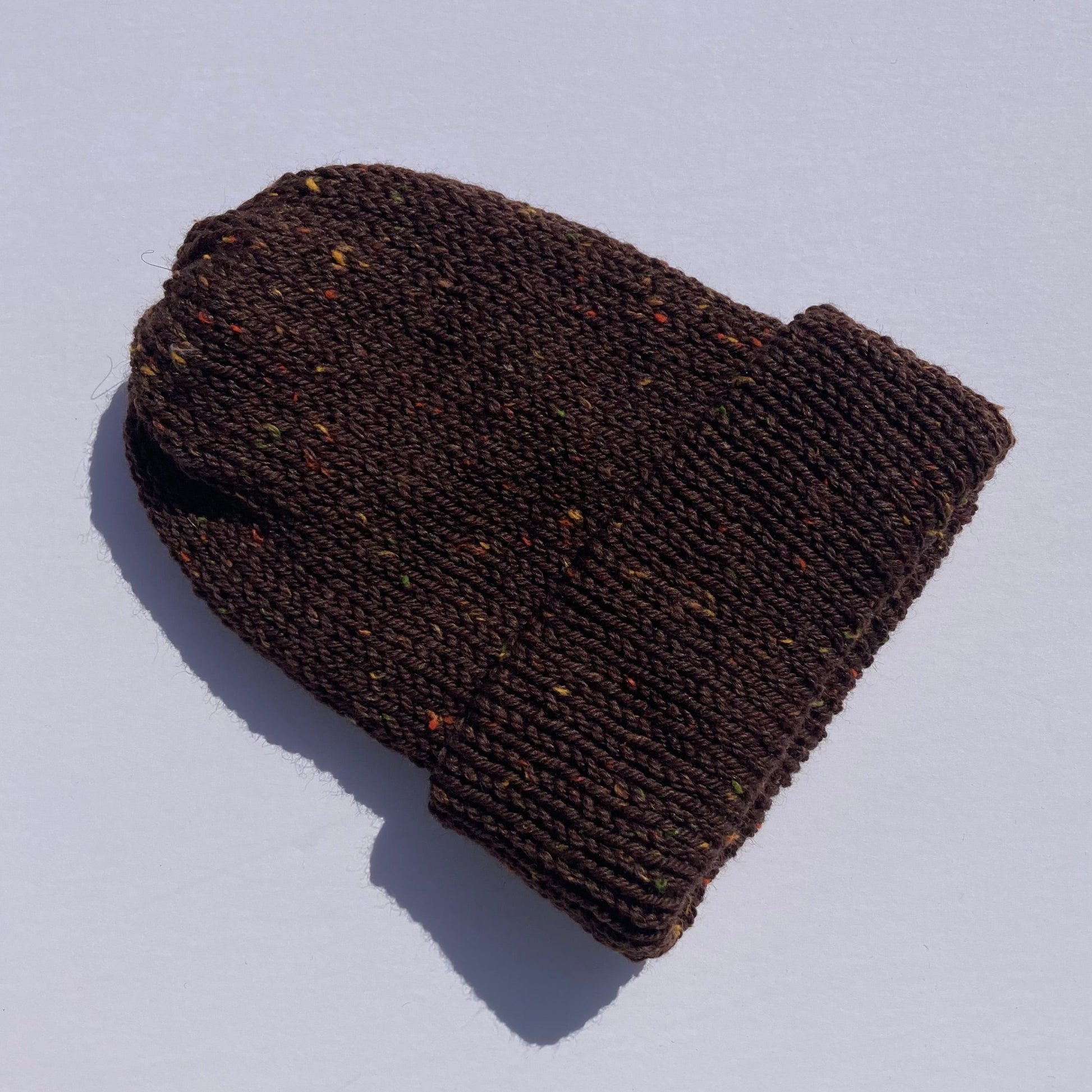 Double Layer Knit Beanie - 100% Wool - Chestnut Tweed