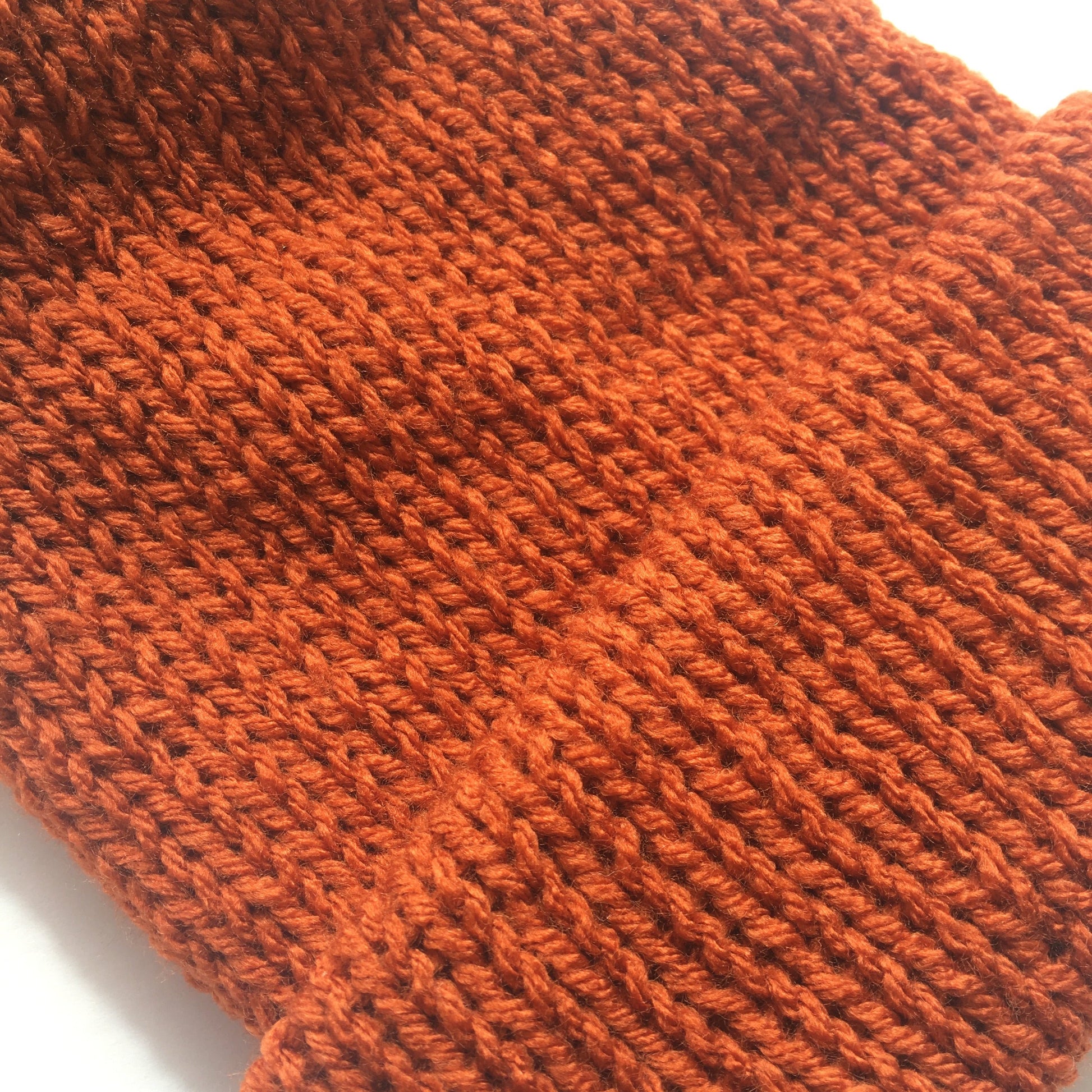 Double Layer Knit Beanie with Removable Pom Pom- 100% Acrylic - Burnt Orange