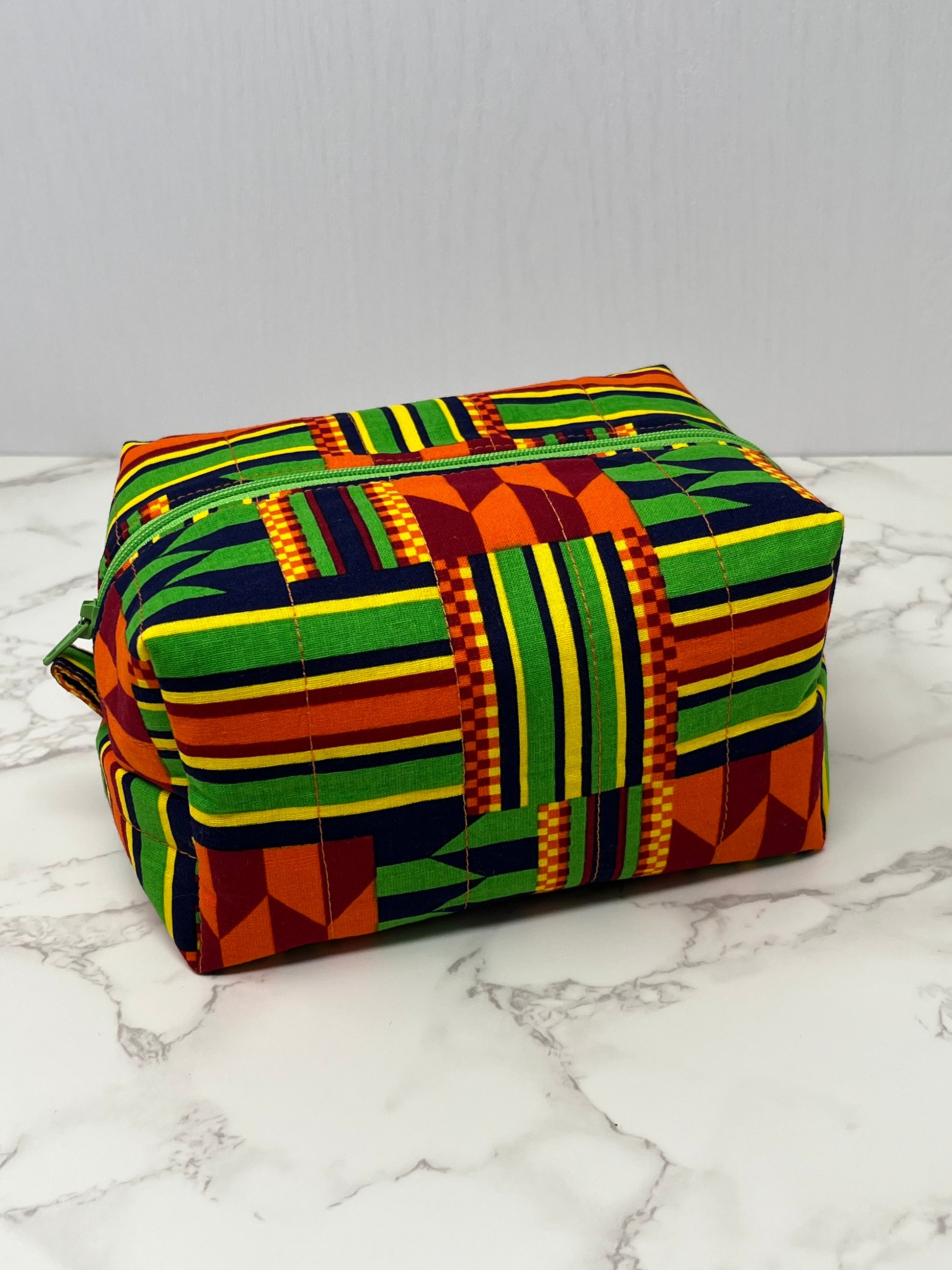 African Print Boxy Zipper Pouch - Kente