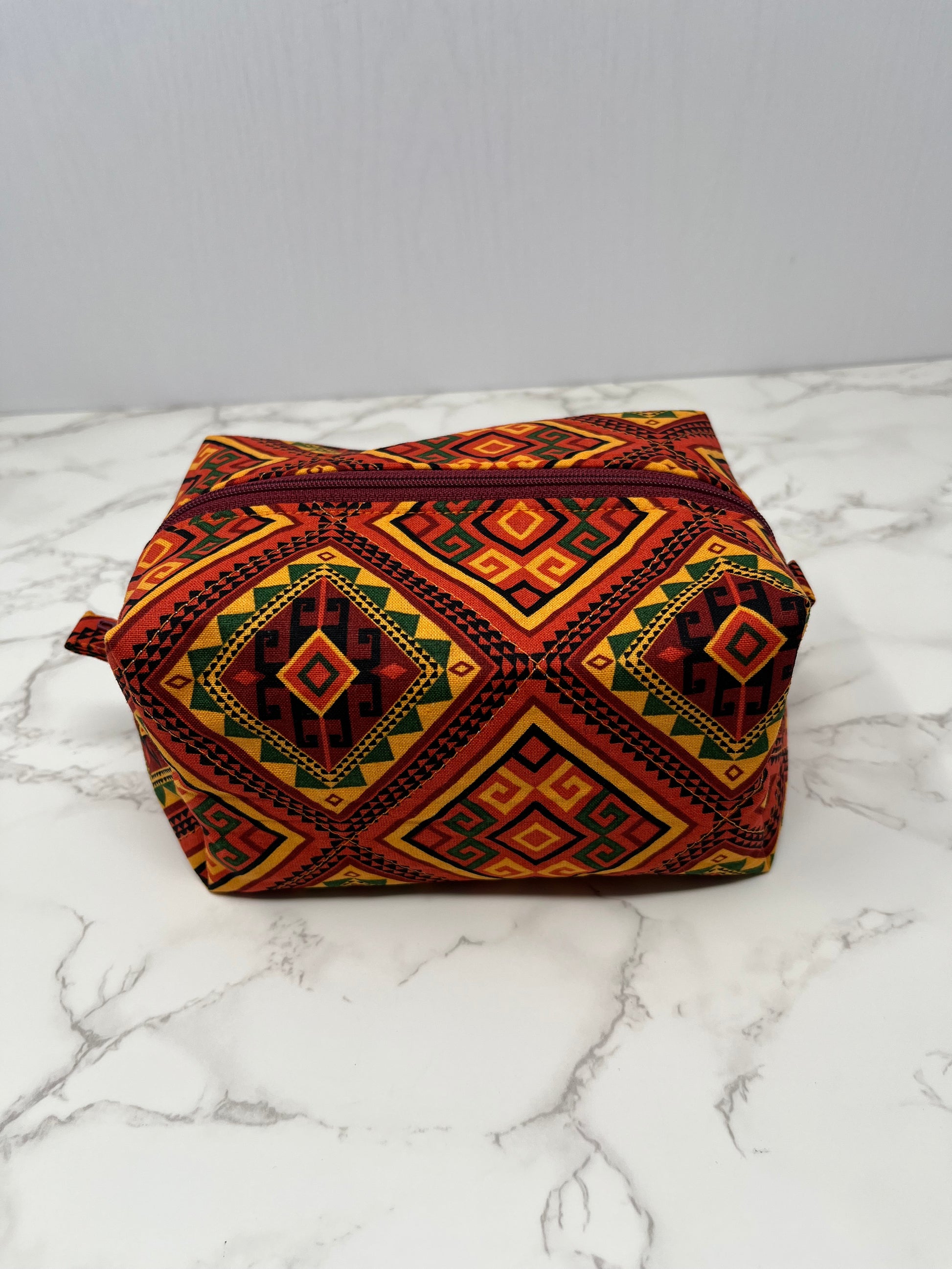 African Print Boxy Zipper Pouch - Tribal Diamonds