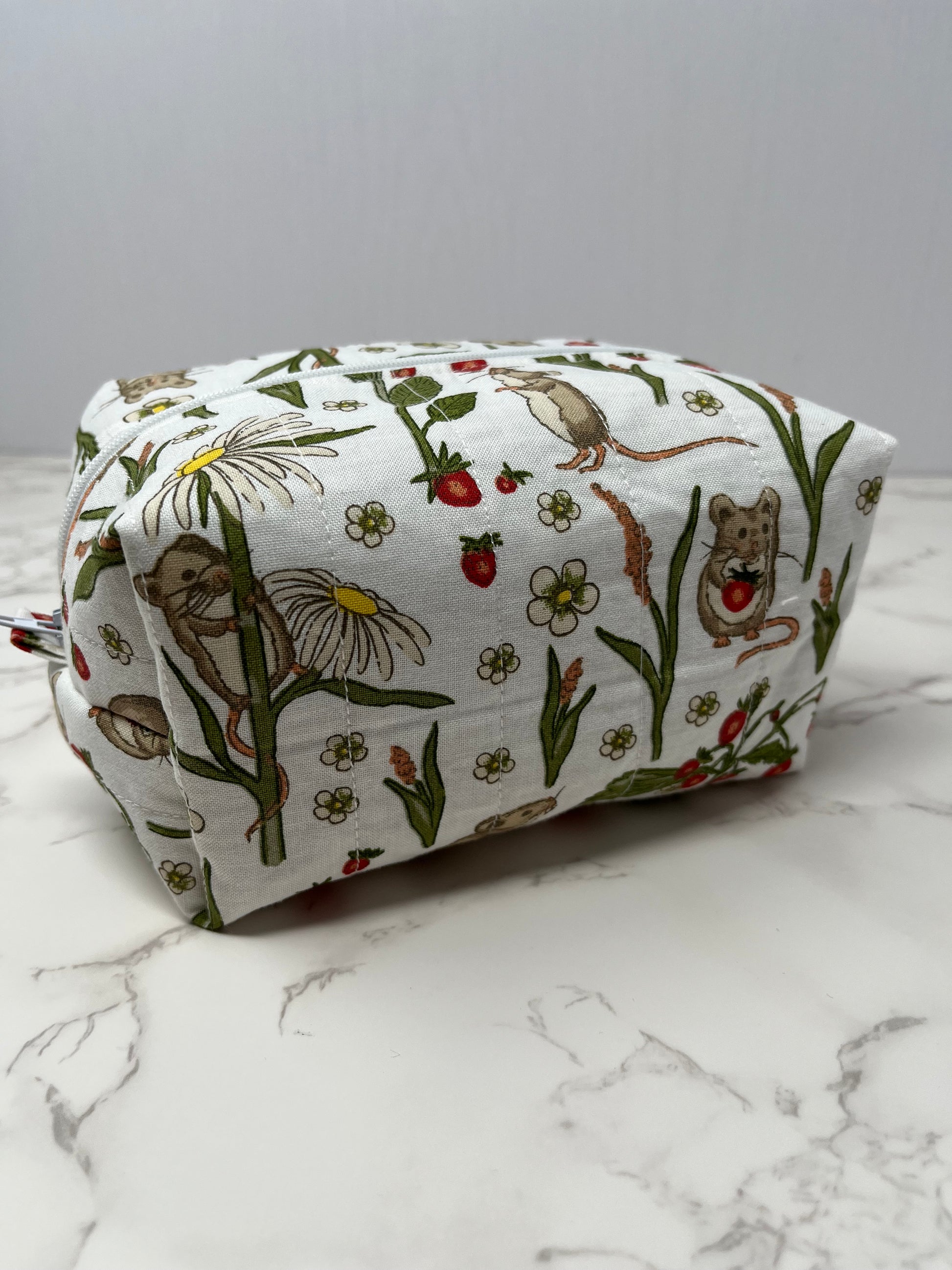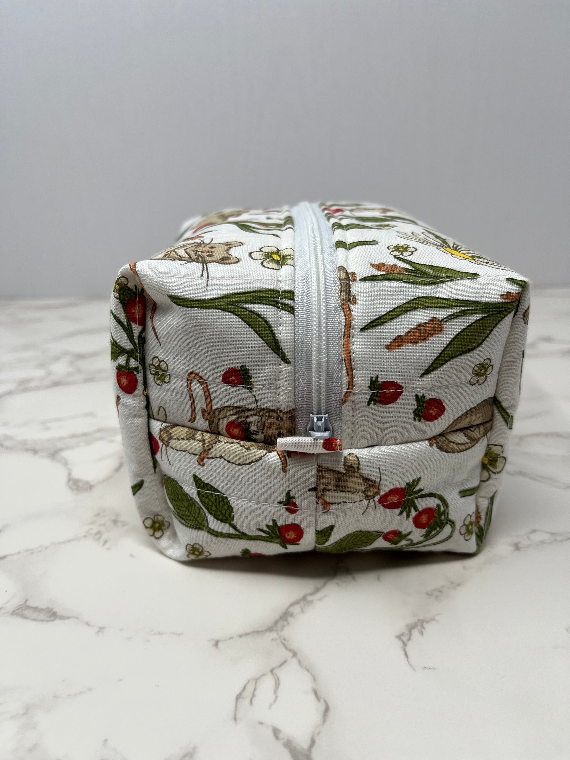 Carefully crafted from 100% cotton fabric backed by a layer of fleece and fully lined for durability and a clean finish. The zipper closure keeps your items secure, while the boxy shape maximizes storage space without taking up too much room in your bag or suitcase.
