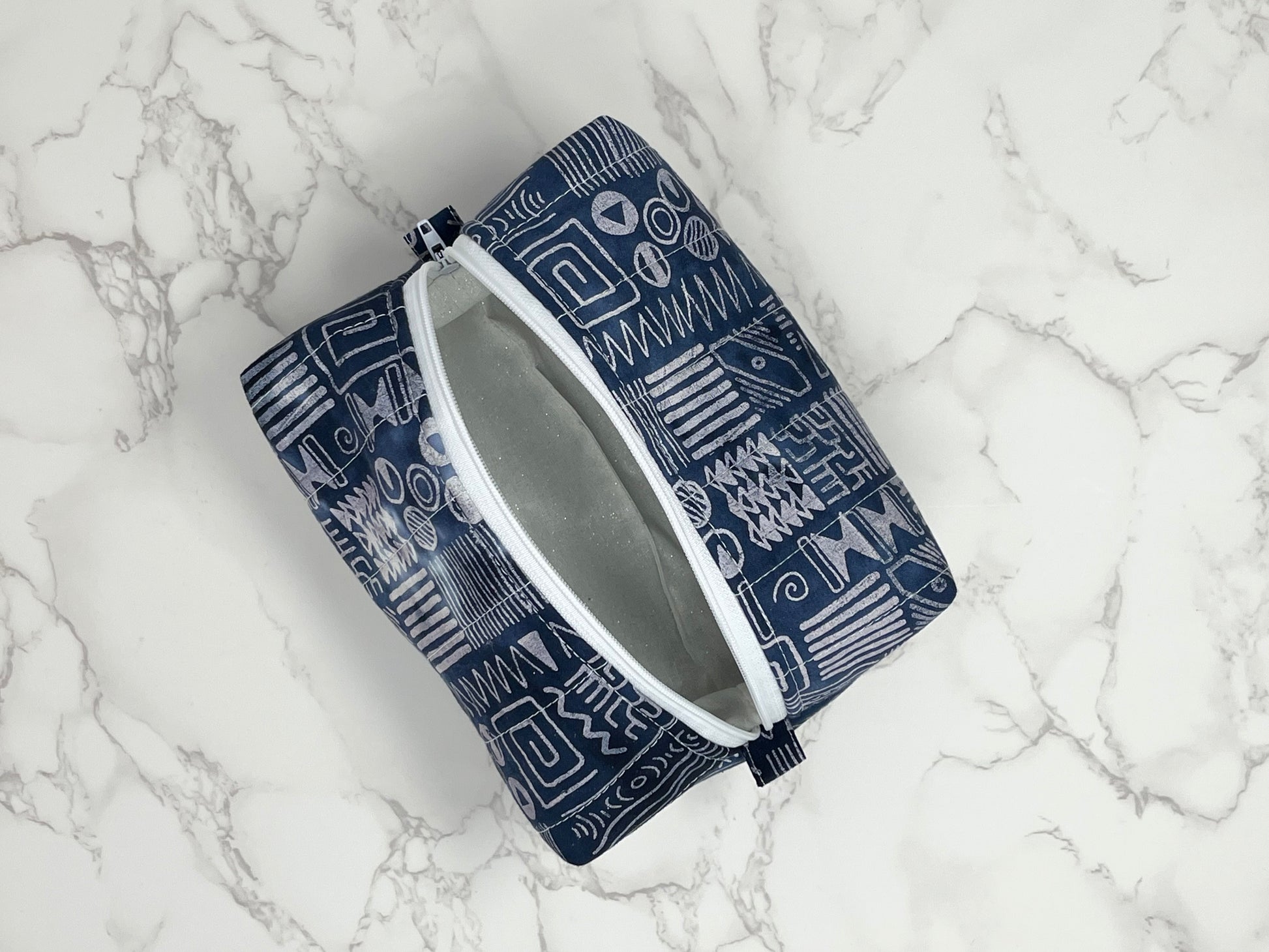 Carefully crafted from 100% cotton fabric backed by a layer of fleece and fully lined for durability and a clean finish. The zipper closure keeps your items secure, while the boxy shape maximizes storage space without taking up too much room in your bag or suitcase.